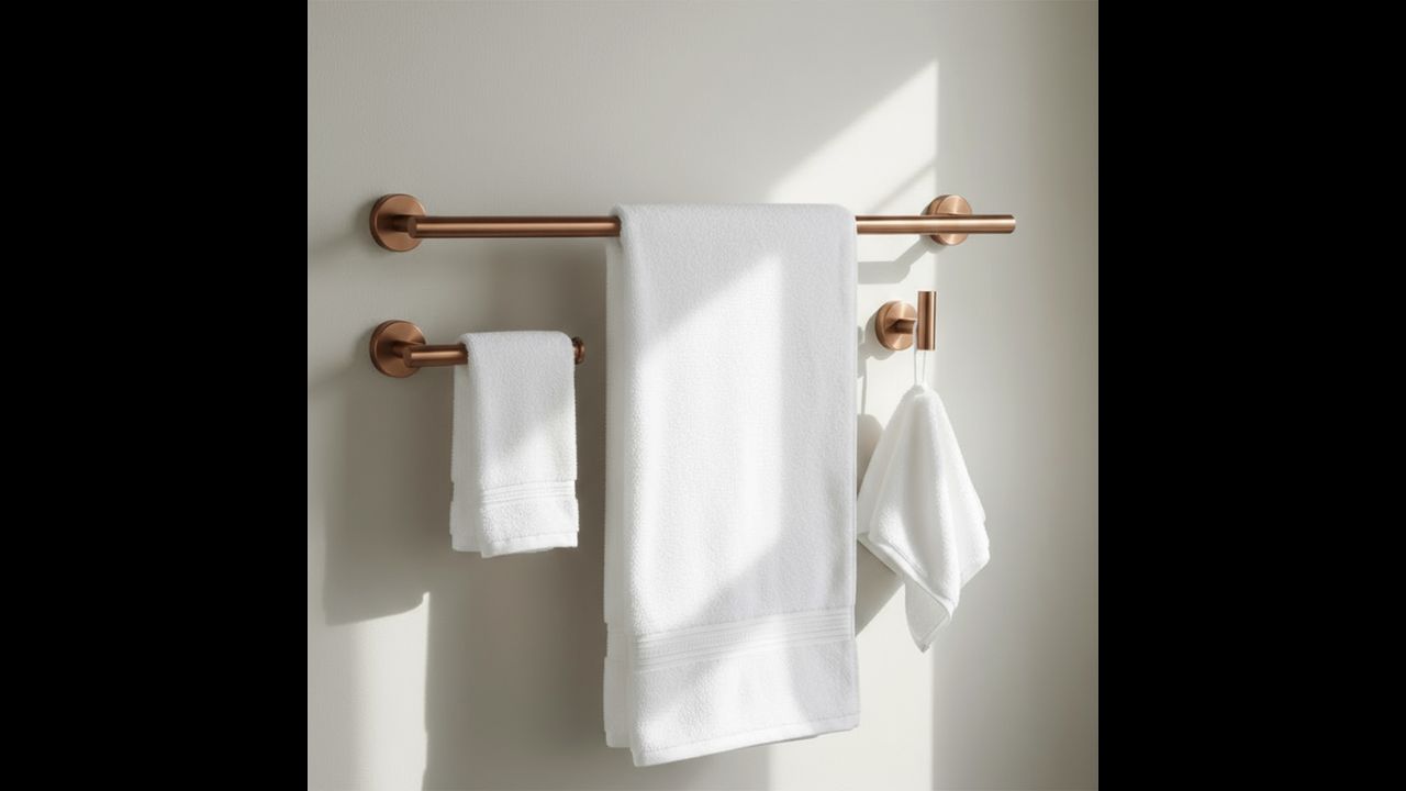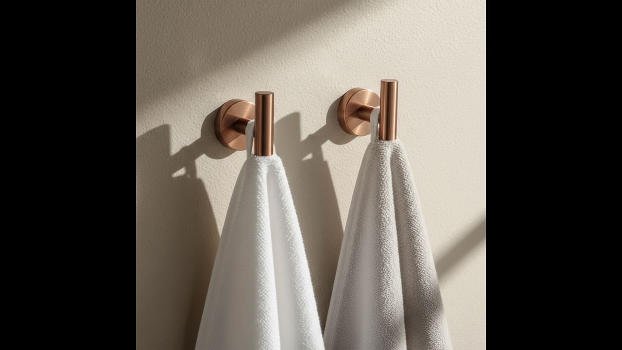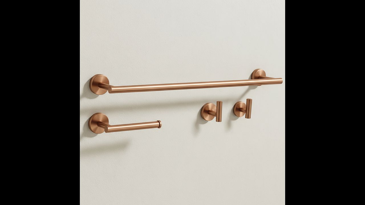Alle Elemente bestehen aus hochwertigem Metall, das feuchtigkeits- und korrosionsbeständig ist. Die Oberfläche in gebürstetem Kupfer verleiht dem Ganzen Eleganz und einen einzigartigen Charakter, während sie unempfindlich gegen Gebrauchsspuren bleibt. Die Accessoires werden an der Wand montiert, was Stabilität, Langlebigkeit und Komfort im täglichen Gebrauch gewährleistet.