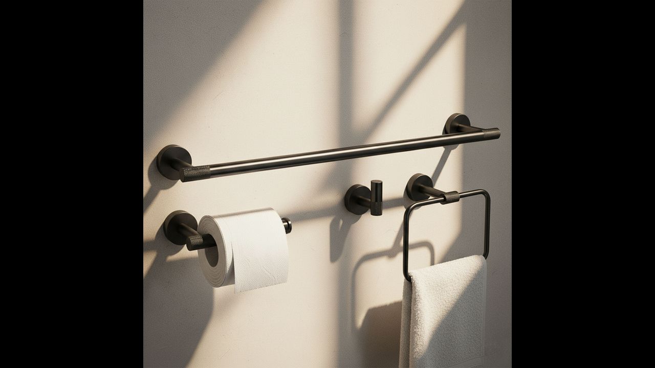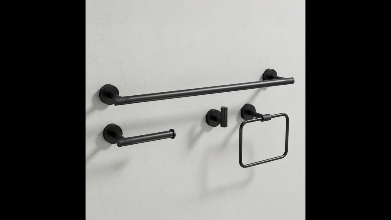 Das Badzubehör-Set Grid ist eine elegante und funktionale Lösung, die sich ideal für jedes moderne Badezimmer eignet. Zum Set gehören: ein Handtuchhalter für große Handtücher, ein Toilettenpapierhalter, ein Handtuchhaken und ein Handtuchring, die zusammen ein harmonisches und stilvolles Ensemble für den täglichen Gebrauch bilden.
